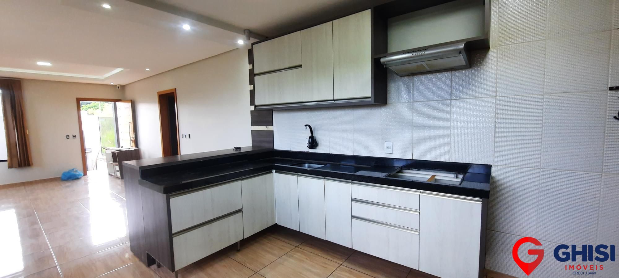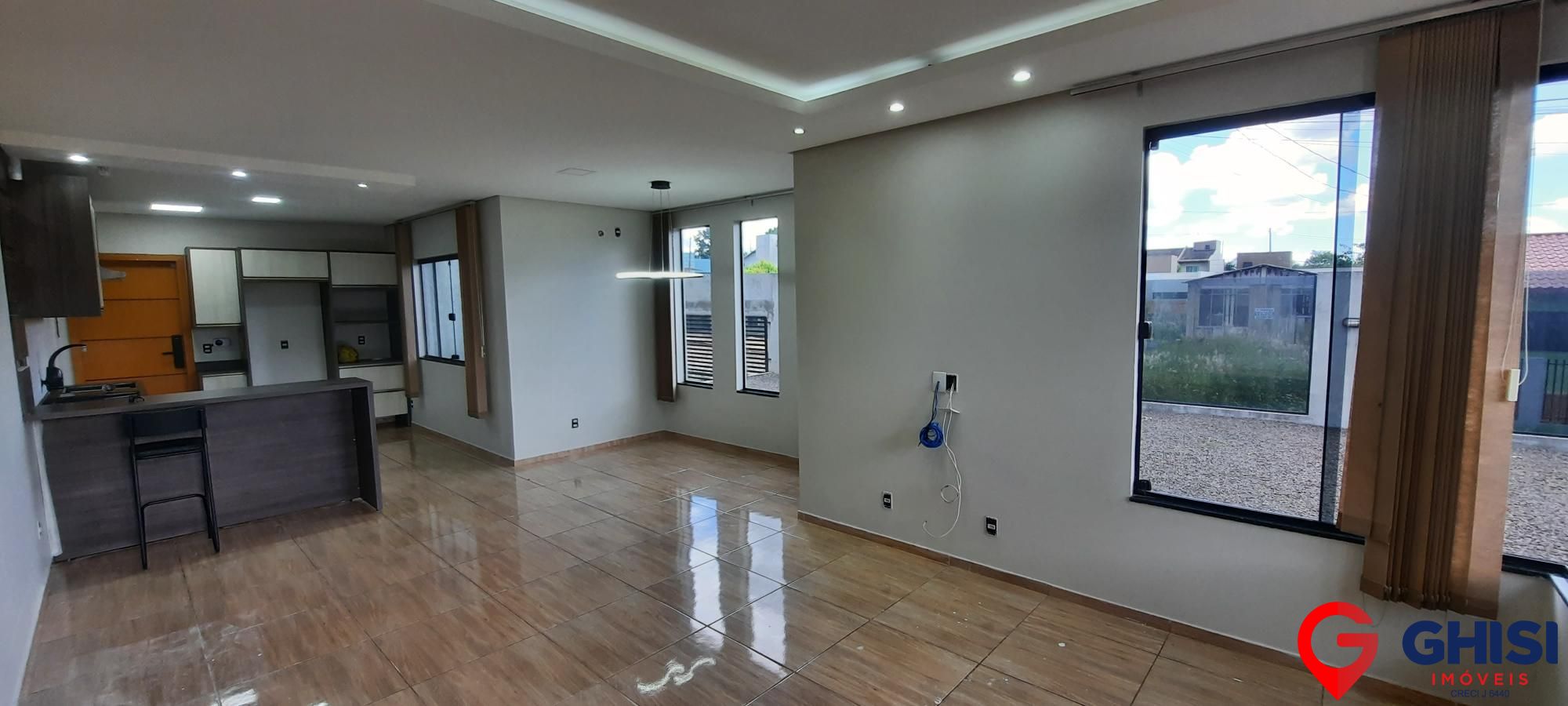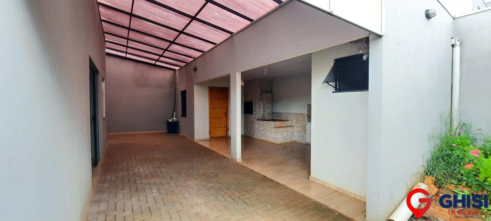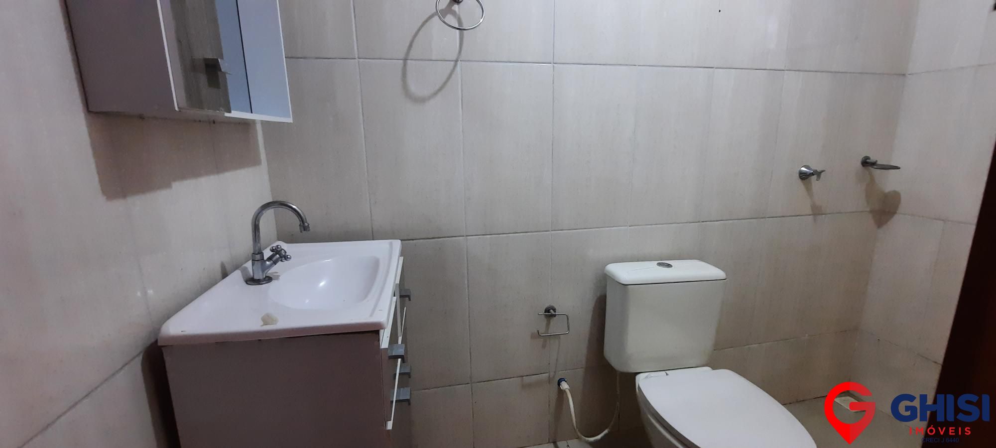 Casa para locação e venda com 3 quartos, sala de estar, cozinha com móveis planejados e banheiro social. Conta com 3 vagas de garagem cobertas, sistema de alarme e câmeras de segurança, além de sobra de terreno.
