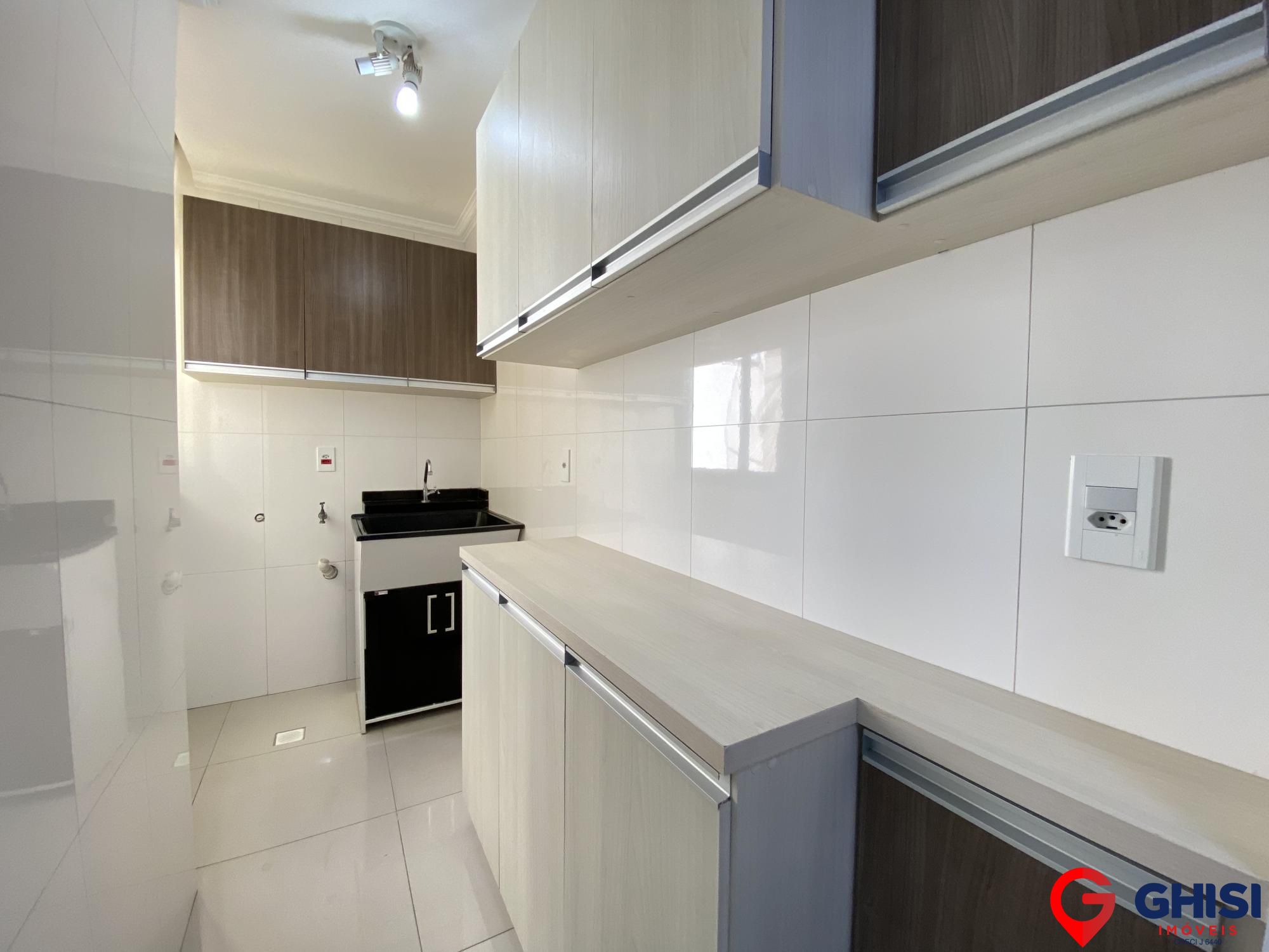 A cozinha com coifa e bancada planejada com espaço para forno elétrico. Na lavanderia armários planejados.